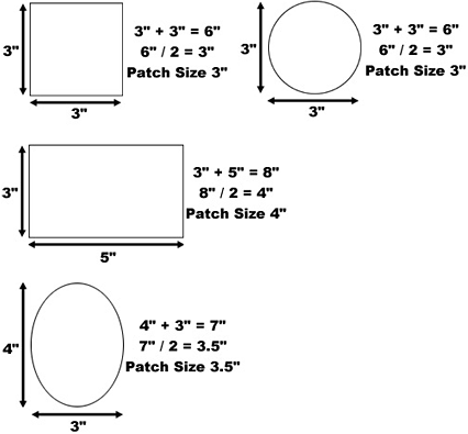 The patch size is the width of the patch plus the height of the patch, divided by two. Below are some examples: